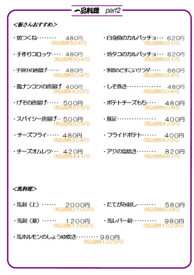 お店で使用しているメニューがご覧になれます