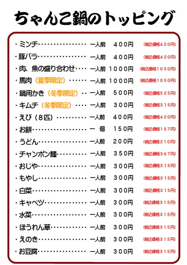 ちゃんこ鍋のトッピング